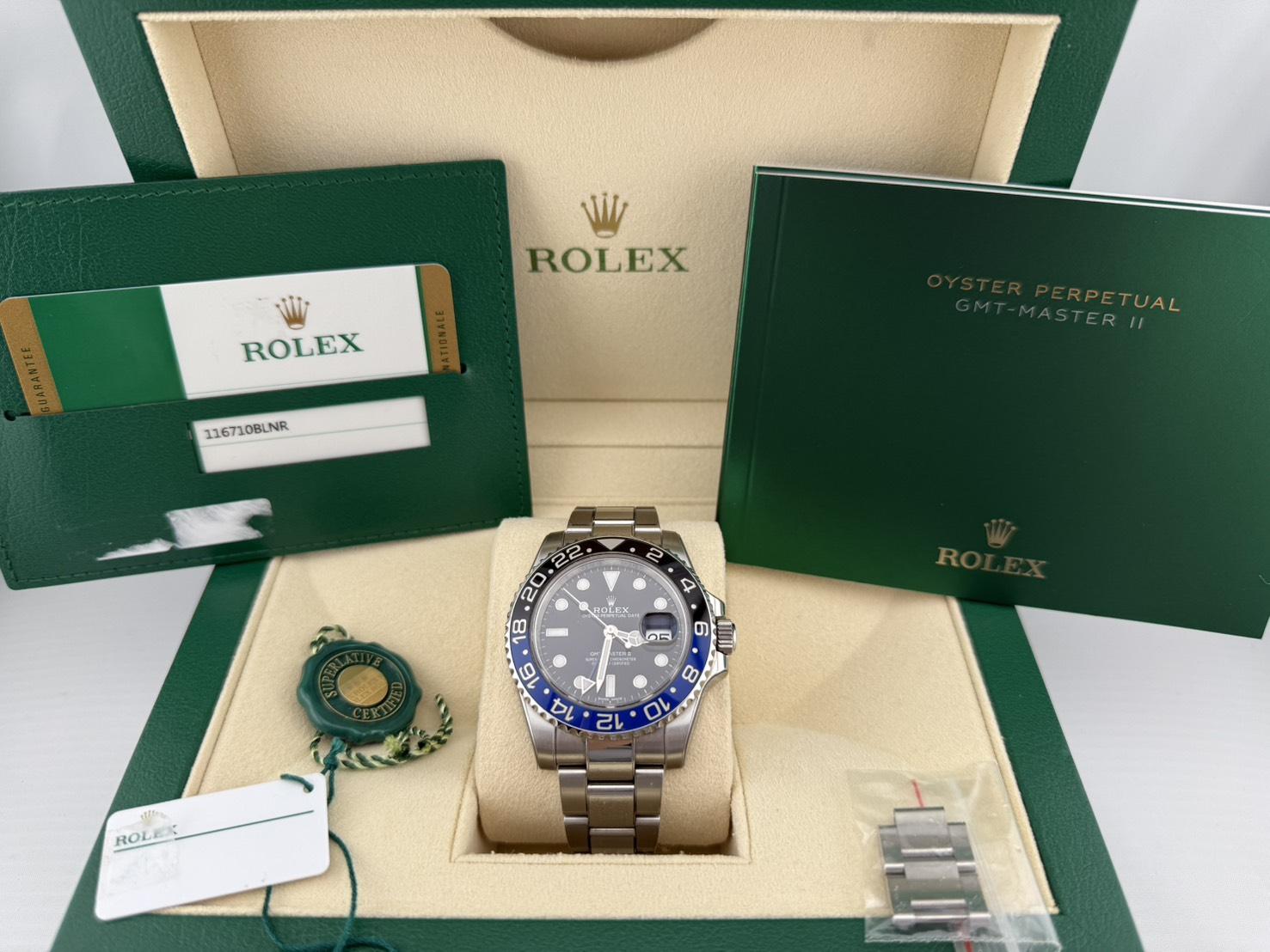 型號:116710-BLNR 錶徑:40mm 機芯:3186 自動上鍊 功能:日期顯示/雙時區/24小時 /夜光 防水:100m 品相:95成新(有包膜) 盒單齊全,保卡2018...more