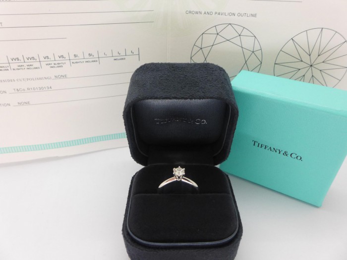 Tiffany&Co. 蒂芬妮 鑽石戒指 0.19ct H/VVS1/3EX H&A PT950 n0094